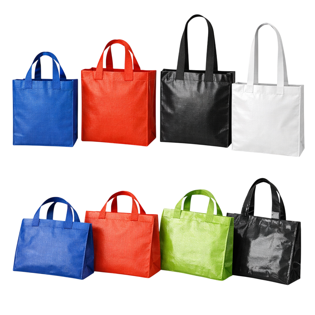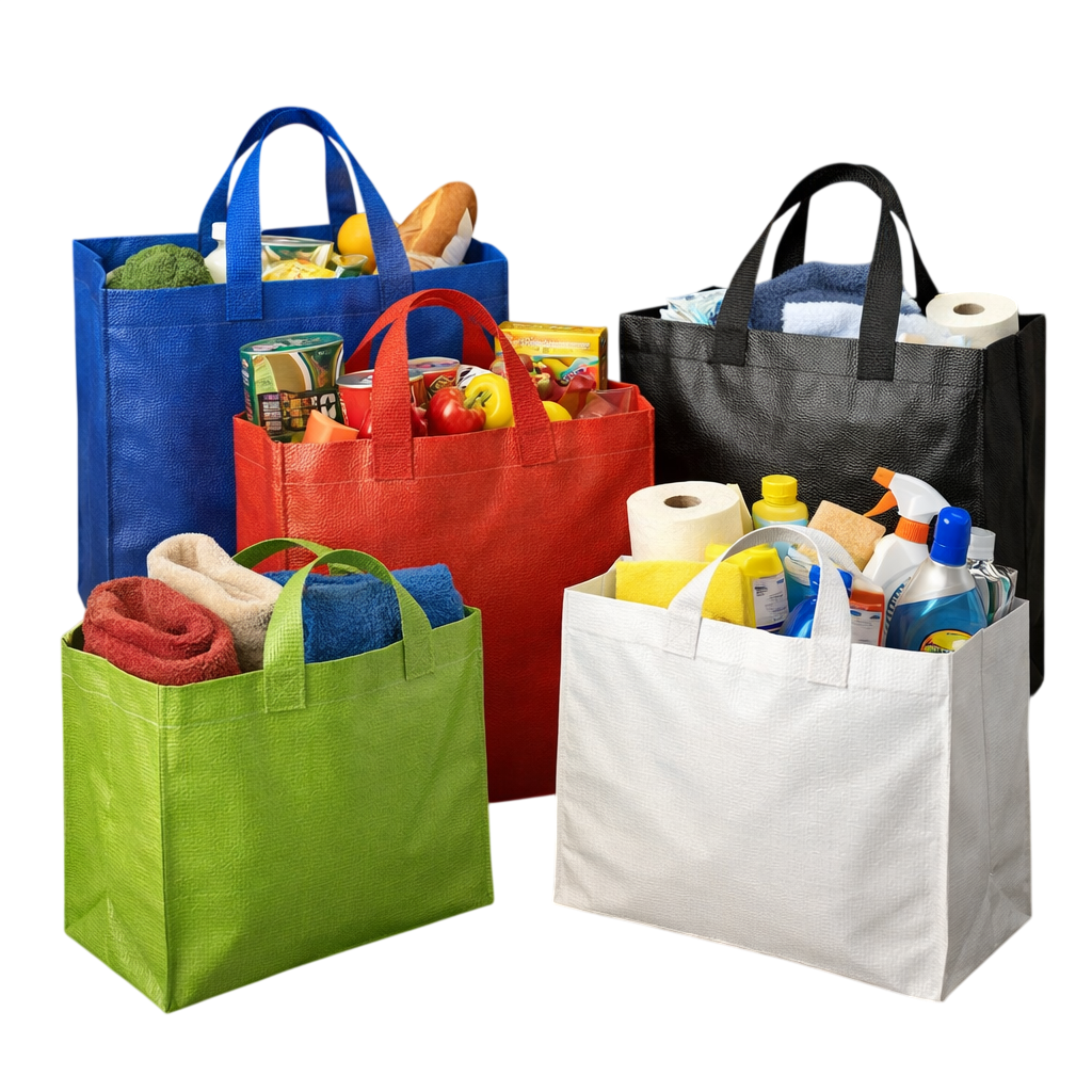Плетеный полипропилен с ламинированным слоем обеспечивает устойчивость к износу и аккуратный внешний вид. Ламинация защищает поверхность от загрязнений и облегчает уход, что особенно важно для торговых сетей с высоким оборотом. Материал сохраняет форму даже при полной загрузке, а срок службы превышает показатели бумажных и тонких пластиковых аналогов.